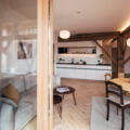 Im oberen Stock des denkmalgeschützen Gebäudes erwartet Euch unsere wohl aussergewöhnlichste Wohnung. Hier wohnt ihr direkt zwischen den über 150 Jahre alten Balken unseres Stadels, die mitten durch die Wohnung gehen.
