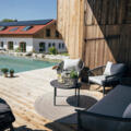 Unser Naturpool wartet immer mit kristallklarem Wasser auf Euch. Das erreichen wir durch eine ausgeklügelte Filtertechnik. Ihr könnt bequem über große Steinstufen ins Wasser schreiten. Bei einer Tiefe von 90cm bis 1,40m können groß und klein hier eine tolle Zeit verbringen.